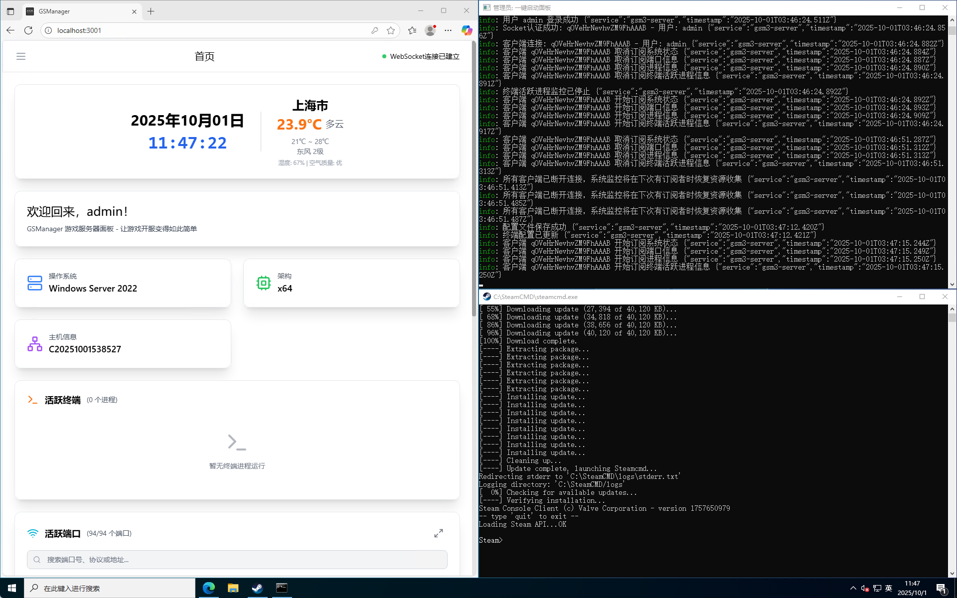 - SteamCMD已安装至 C:\SteamCMD 目录下,并且已经完成更新,更新日期与镜像日期相同,如有需要请手动更新