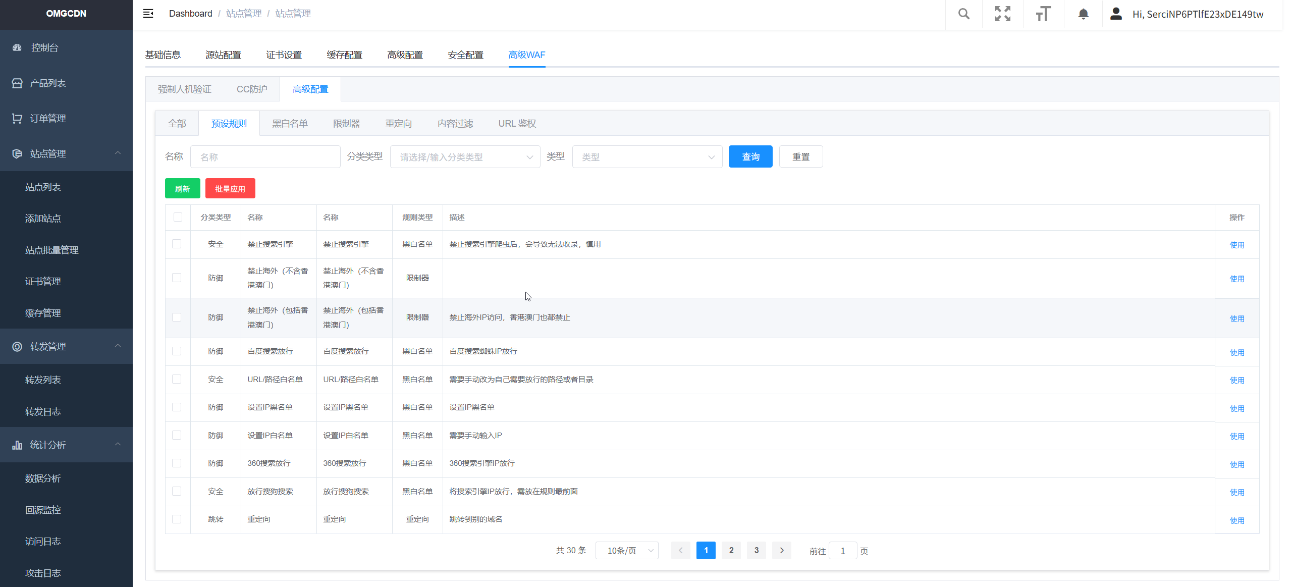 - 6. 多规则自定义使用,如一键封禁区域、设置渗透防御规则、访问频率限制等