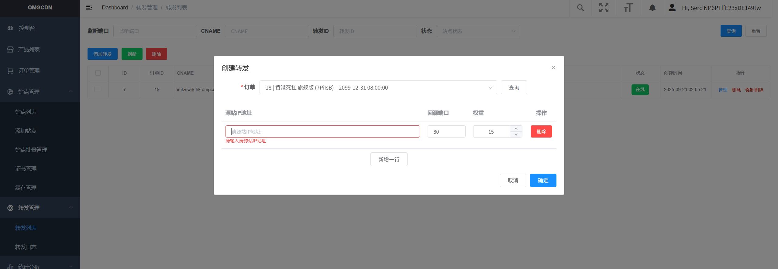 打开CDN主控地址(购买后可见),点击转发列表,选择添加转发。注意点如下: