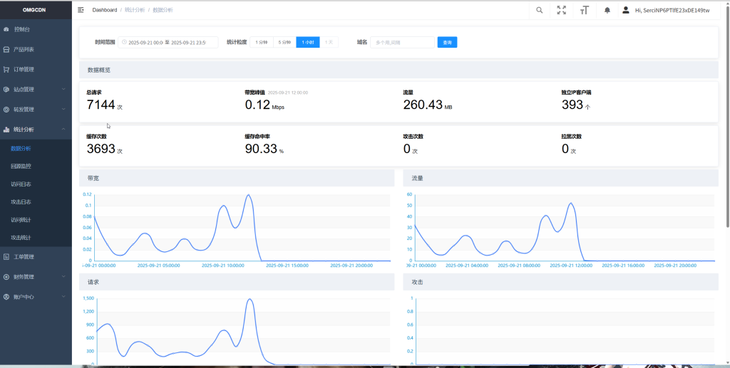 备注:也支持详细的数据分析、回源监控、访问日志、攻击日志等