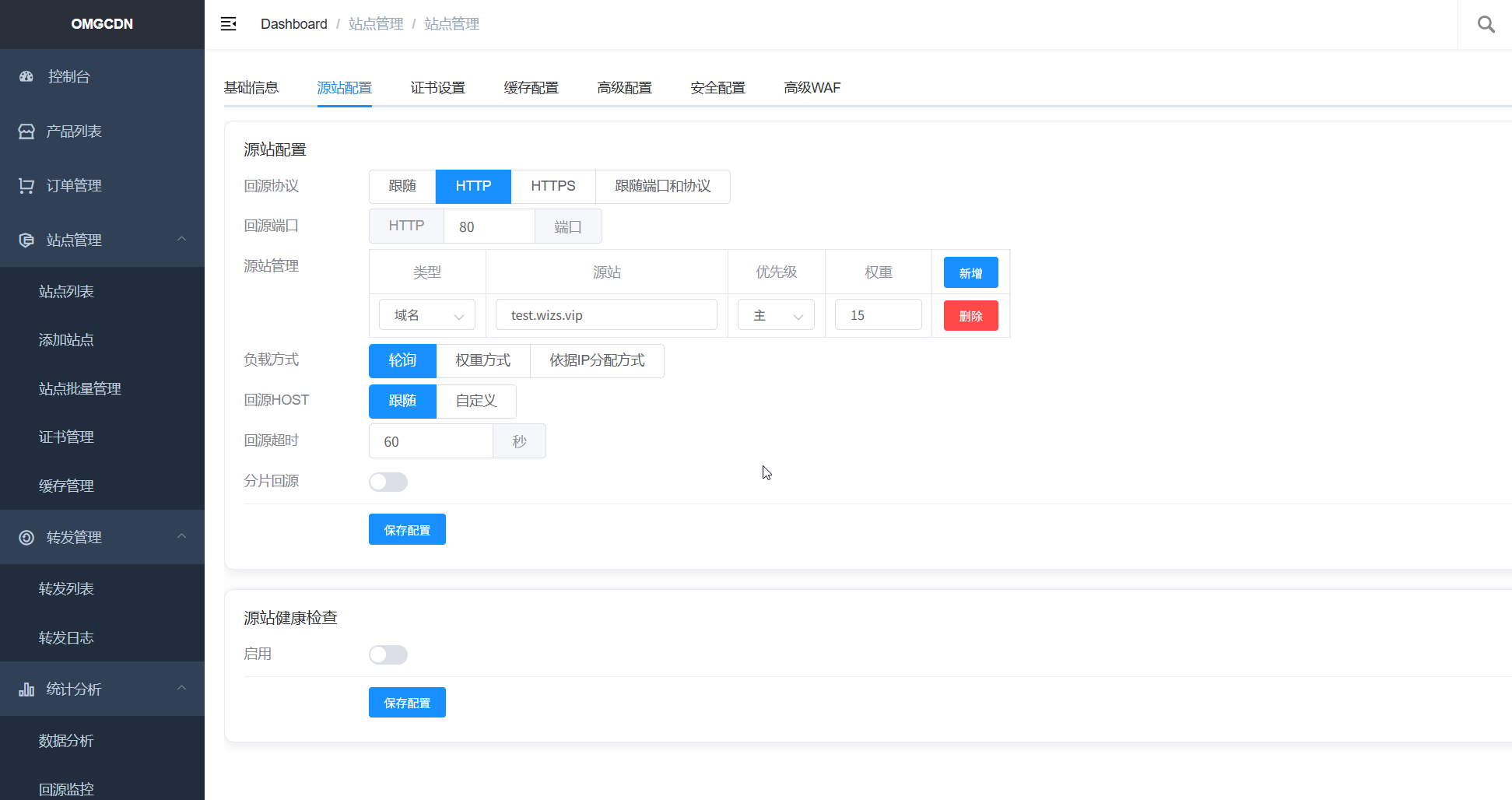 - 源站健康检查,可以选择post或者get指定参数,来确认源站健康(一般可以不开)