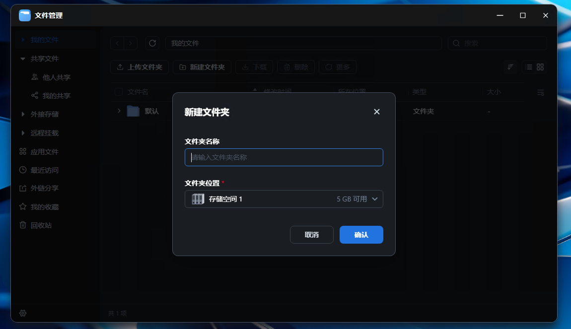 打开文件管理,新建存储文件夹,名称可以自定义,存储池用下面给你分配的就可以。